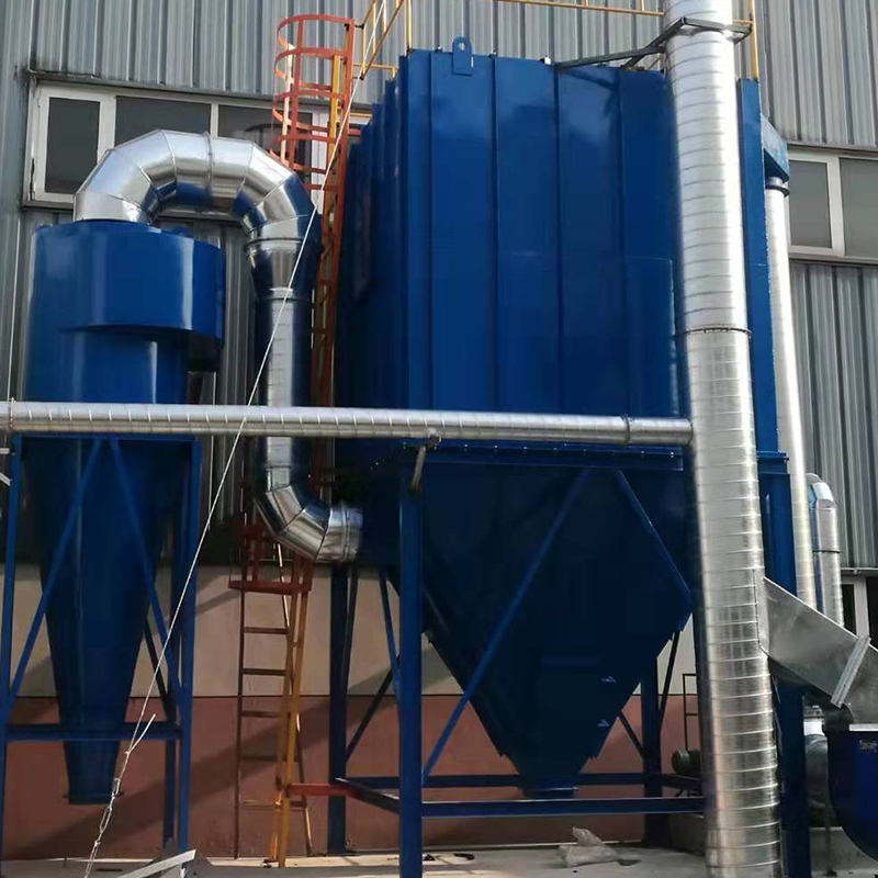 含尘空气由除尘器底下进入除尘器箱体中部,颗粒较粗的粉尘靠其自身重力向下沉降后落入灰仓,细小粉尘通过各种效应被吸附在滤袋外壁,经滤袋过滤后的净化空气通过文氏里管进入上箱体从出气口排出,被吸附在滤袋外壁的粉尘随着时间的增长,越积越厚,除尘器阻力逐渐上升,处理的气体量不断减少。为了使除尘器经常保持在 的工作状态,使压力损失保持在范围内,就需要吸附在袋壁外面的积灰。