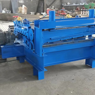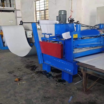 开平机的卷筒料在左右箱体活动轴座上自由滚动,打开卷筒材料。钢板在输送架上向开平机推进,是配合开平机的前道工序。