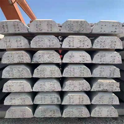 水泥枕木蒸汽脱模一次成型,外表光滑,里面坚硬,并含有多种螺纹钢。水泥枕木按照水泥标号C40制作,弹性均匀,绝缘性好,稳定性高,不受天温度等外在温度的影响,不腐烂使用寿命长。起到固定钢轨的作用。