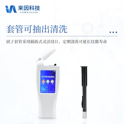 该仪器可快速检测各种水质中微生物、细菌含量。设备为全新升级产品,大屏幕触摸显示屏,代替传统按键。操作采用生物化学反应方法检测ATP含量,ATP荧光检测仪基于萤火虫发光原理,利用“荧光素酶—荧光素体系”快速检测三磷酸腺苷(ATP)。ATP拭子含有可以裂解细胞膜的试剂,能将细胞内ATP释放出来,与试剂中含有的特异性酶发生反应,产生光,再用荧光照度计检测发光值,微生物的数量与发光值成正比,由于所有生物活细胞中含有恒量的ATP,所以ATP含量可以清晰地表明样品中微生物与其他生物残余的多少,用于判断卫生状况。