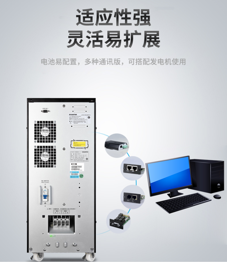 • 市场上畅销,存量广的在线式UPS, 30 年经验积累,符合中国电力环境