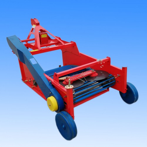 土豆收获机又名:马铃薯收获机、洋芋收获机、芋头收获机、地瓜收获机、地蛋收获机、土球收获机、红薯收获机、地蛋收获机、药材收获机。此机器与手扶拖拉机配套使用,配套动力为8-20马力。其工作原理是通过手扶或田园管理机的带动,挖掘铲将土及收获物挖起,通过振动筛使收获物与土壤实现分离。