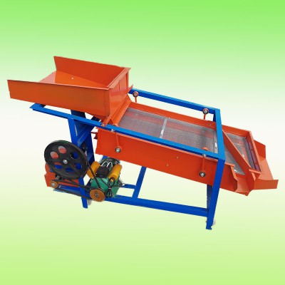 该精选筛为二层筛网,先经过进料口处风机抽风,直接抽走重量轻的杂叶或麦秸秆,上层筛的初次筛分再把大杂清理过,好的粮食(种子)直接落到下层筛网上,下层筛网会把粮食(种子)中的小杂.小石子.有缺陷的粮食(种子)直接漏掉,完好的粮食(种子)会从出料口筛分出来。该小型清粮机解决了扬场机的功能单一,不能有效去除石子.土块的缺陷,更能为清理.净选粮食(种子)带来满意的效果。该机有占地小,移动方便,便以维修,除尘除杂效率明显,能耗低,使用简便等优点。