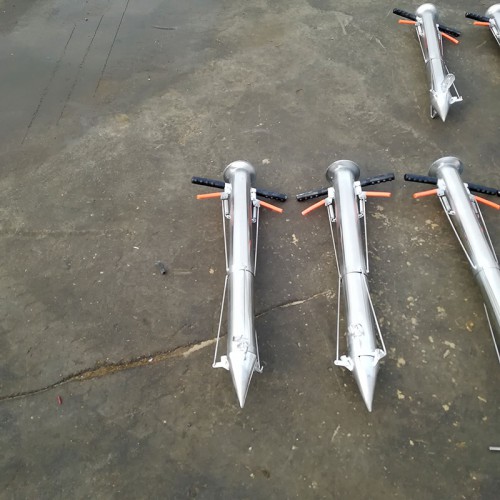 1.在盖地膜或不盖地膜的畦面上,松开手柄将本产品插入土中。