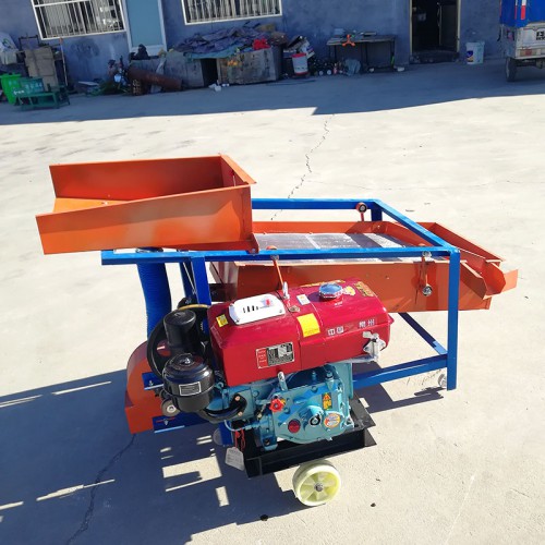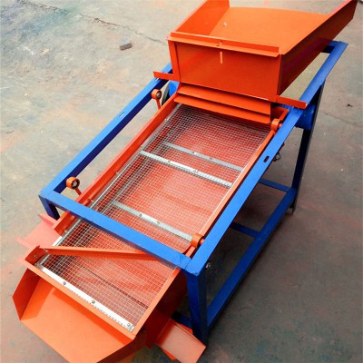 该精选筛为二层筛网,先经过进料口处风机抽风,直接抽走重量轻的杂叶或麦秸秆,上层筛的初次筛分再把大杂清理过,好的粮食(种子)直接落到下层筛网上,下层筛网会把粮食(种子)中的小杂.小石子.有缺陷的粮食(种子)直接漏掉,完好的粮食(种子)会从出料口筛分出来。该小型清粮机解决了扬场机的功能单一,不能有效去除石子.土块的缺陷,更能为清理.净选粮食(种子)带来满意的效果。该机有占地小,移动方便,便以维修,除尘除杂效率明显,能耗低,使用简便等优点。