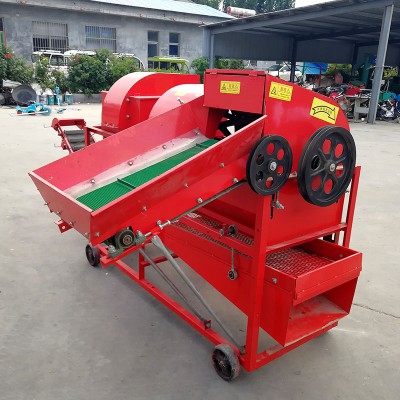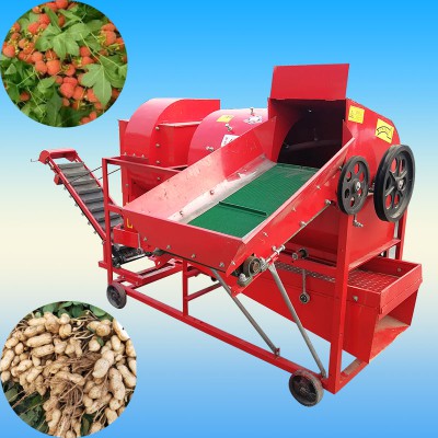花生摘果机用于花生收获后带蔓直接摘果,可在田间地头灵活移动使用,摘果干净,果壳破碎率低,损失少,干湿茎杆都可用,工作效率高,脱粒干净。