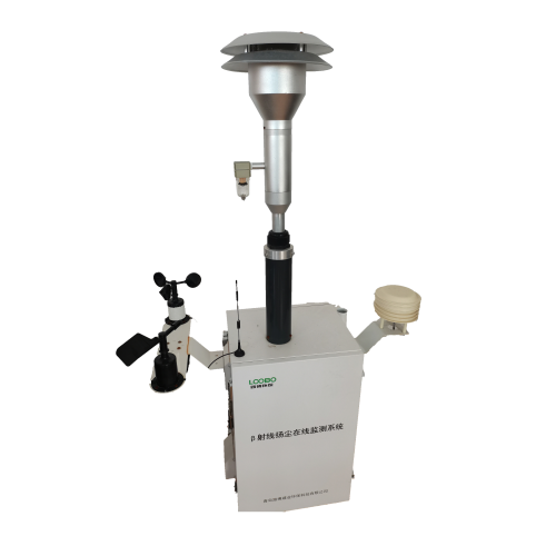 LB-7220型扬尘在线监测系统(β射线)可自动测量和记录扬尘浓度,采用的是贝塔射线吸收法的工作原理,将C-14作为发射源,其发射恒定的高能量电子,样品空气通过切割器以恒定的流量经过进样管,颗粒物截留在滤膜上。β射线通过滤膜时,能量发生衰减,通过对衰减量的测定计算出颗粒物的质量,根据采样流量、采样时间和滤膜面积来计算实际状态下环境空气中颗粒物的浓度。
