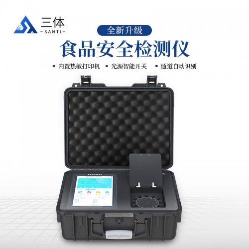 1)仪器采用手提式一体化系统检测技术,将分光光度模块、胶体金检测模块、新型农残检测模块、数字化管理模块、无线通讯模块高度集成于一体,支持检测200种食品安全检测项目,同时预留升级检测方法。