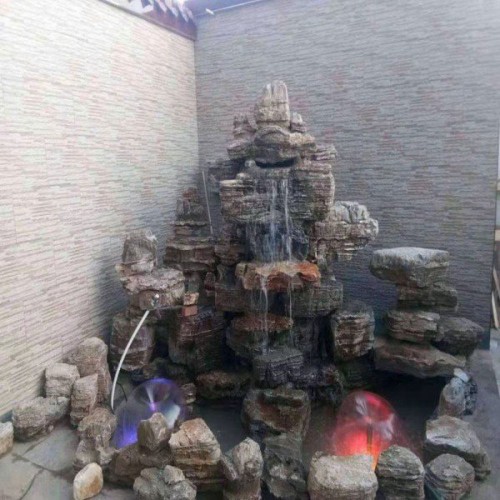 千层石水泥假山 室内外园林景观 庭院鱼池设计