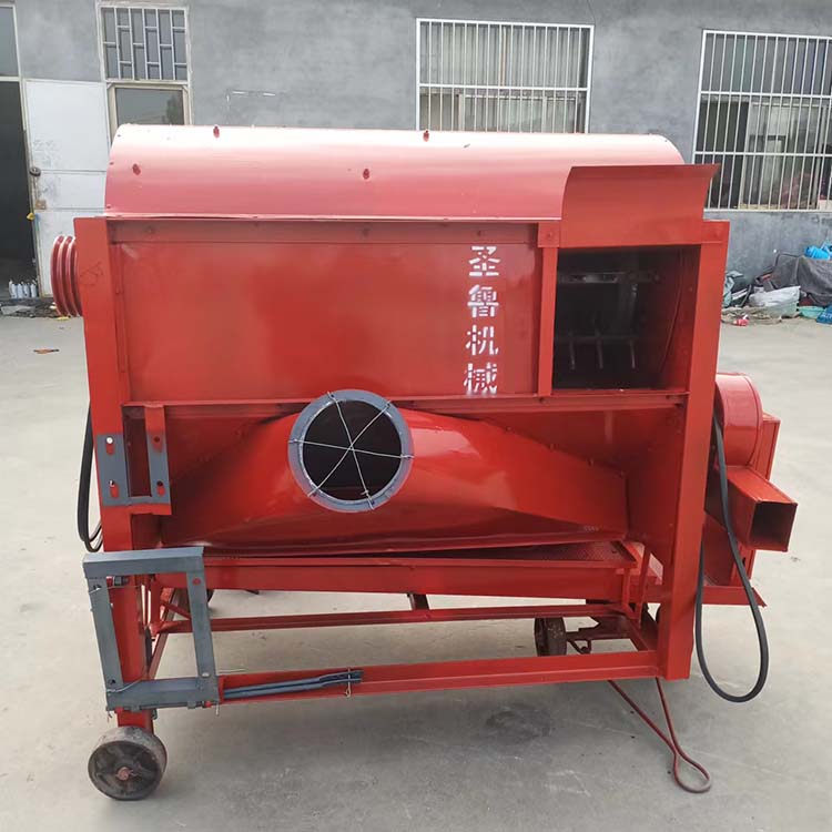 种子脱粒机工作时,请将作物连续均匀的喂入,作物由滚筒上的齿条与筛网组合间件的摩擦,挤压,碰撞,抖动使籽粒从茎秆上分离,从筛网上流出,茎秆由滚筒的离心作用抛射出去,完成脱粒。