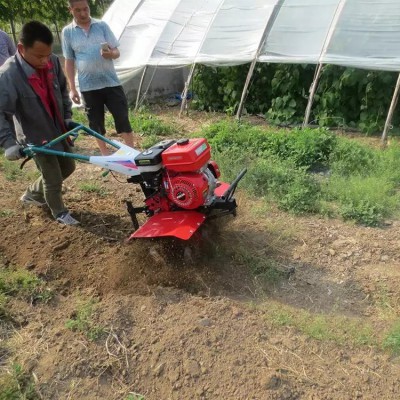 手扶式微耕机是根据我国广大丘陵,山区,地块小,高差大,又无机耕道而设计的。以小型汽油机或是柴油机为动力,以皮带离合器作为传动,具有重量轻,体积小,结构简单,操作方便,易于维修,油耗低,生产效率高等特点。 用于田间耕作,开沟筑垄,也可用于蔬菜大棚,苗圃,果园,茶园的管理,深受广大用户的喜爱。 涡轮涡杆传动,皮带式张紧,进退档齐全,前轮驱动,使操作更加轻松.适合沙质地,经济作物种植的松土、中耕和除草。