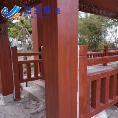 嘉美斯木纹漆性能卓越,环保无味,无污染,涂膜附着力强,能适用于各种基面(混凝土面、镀锌板、钢结构、铁结构、金属表面等),阻燃,耐擦洗,耐酸碱,不易褪色,无接缝,不起皮,不开裂。底色与面色可以自由搭配,适用专用的木纹器施工,倾指之间可以做出想要的效果。