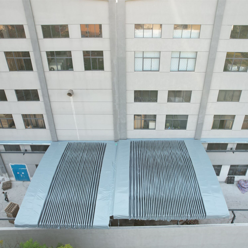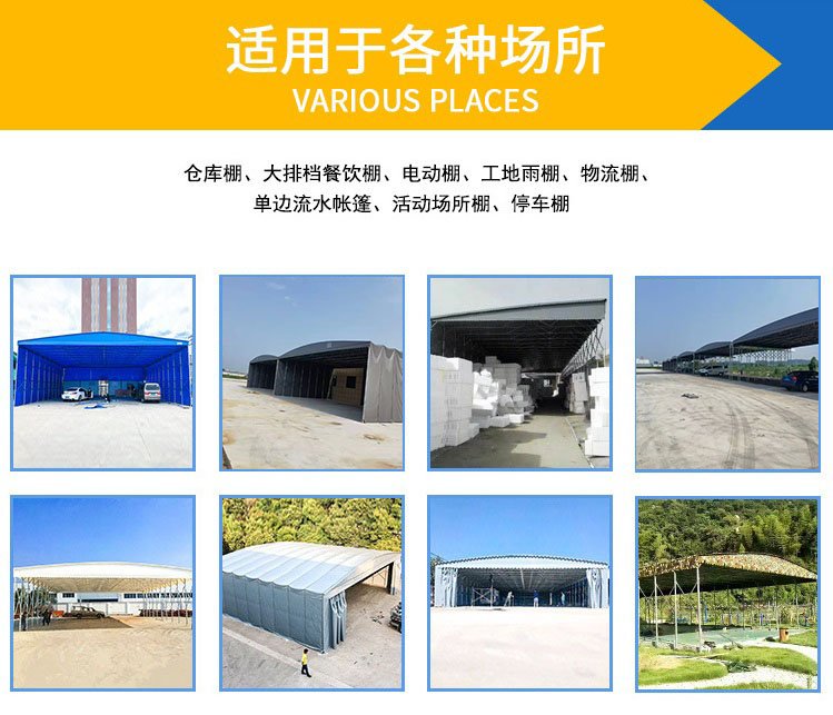 电动推拉棚常用于篮球场、网球场、足球场、厂房过道遮阳棚、具有隔热功能,能有效避免日晒雨淋,电动的设计将户内外融为一体,棚顶可从中间往两边打开,或者从一端打开,安装的是防风路可以卡在H钢轨道上,可以有效的进行防风,滚动效果好,可随时切换室内外模式,灵活自由的掌握内部空间。