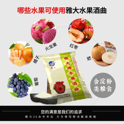 水果酒曲:适用于各种水果低度发酵酒、高度白兰地酿造,酿出的酒果香浓郁、色泽透亮