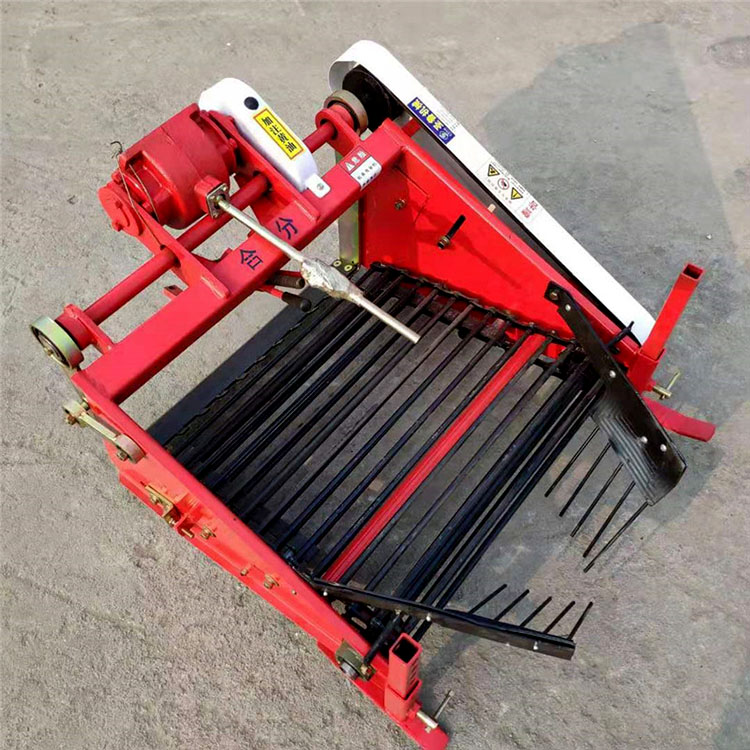 土豆收获机又名:马铃薯收获机、洋芋收获机、芋头收获机、地瓜收获机、地蛋收获机、土球收获机、红薯收获机、地蛋收获机、药材收获机。此机器与手扶拖拉机配套使用,配套动力为8-20马力。其工作原理是通过手扶或田园管理机的带动,挖掘铲将土及收获物挖起,通过振动筛使收获物与土壤实现分离。