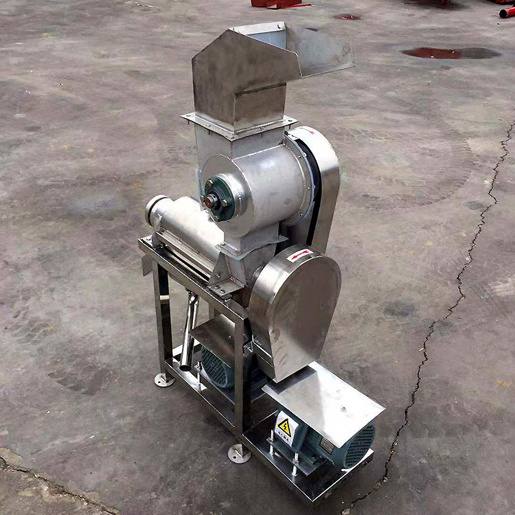原料加入进料斗中,在螺旋的推进下受压,其压榨的汁液通过过滤网流入底部的盛汁器,而废