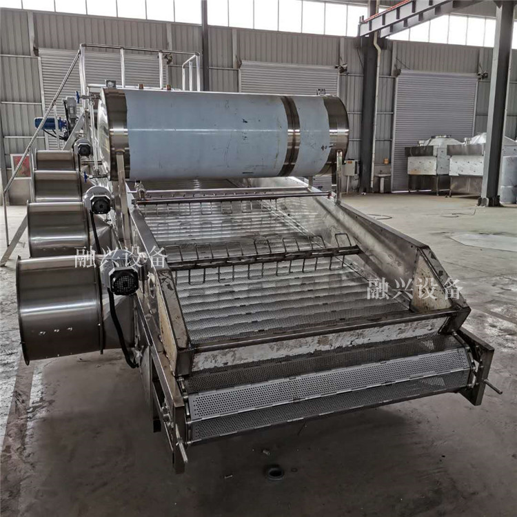 自动摊凉机是我厂根据国内白酒厂生产过程中凉茬操作繁琐、工人劳动强度大、蓖子孔漏料不易回收等弊端专门生产的一种新型设备。蒸馏结束后将出锅后的酒槽落入喂料斗并开动机器,中间实现自动加曲、加浆、降温、卸料,极大地减少了工人劳动强度,整个过程只需15-30分钟(根据甄锅容积大小).