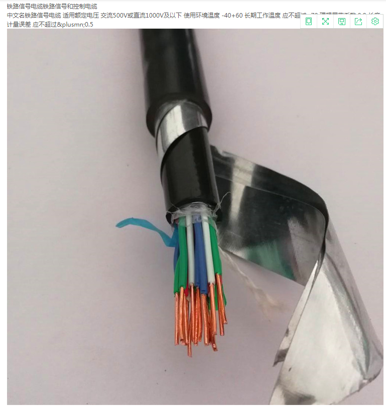 线芯的长期允许工作温度应不超过70度,电缆环境使用温度-40度致60度。综合护套、铝护套均有屏蔽作用,均适用于经过计算机需要设置屏蔽电缆的电气化区段。电缆导体为铜芯导体,导体直径1.0mm,线芯 缘采用高压聚乙烯, 缘厚度0.6mm厚度允许偏差0.1mm。 缘线芯绞合时相邻两层的绞合方向相反,芯数为7芯以上的电缆,每一层应有红、绿两根芯数作为标志线。且不同于同层中其他线芯的颜色。
