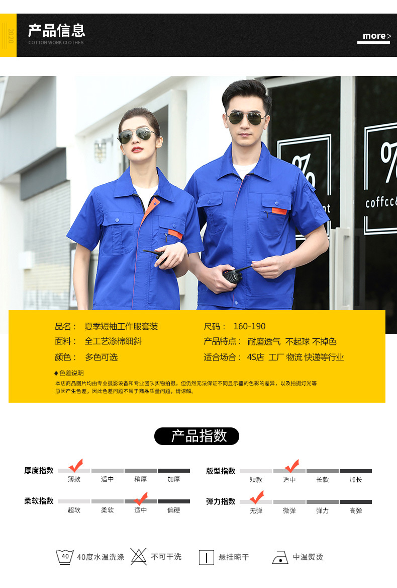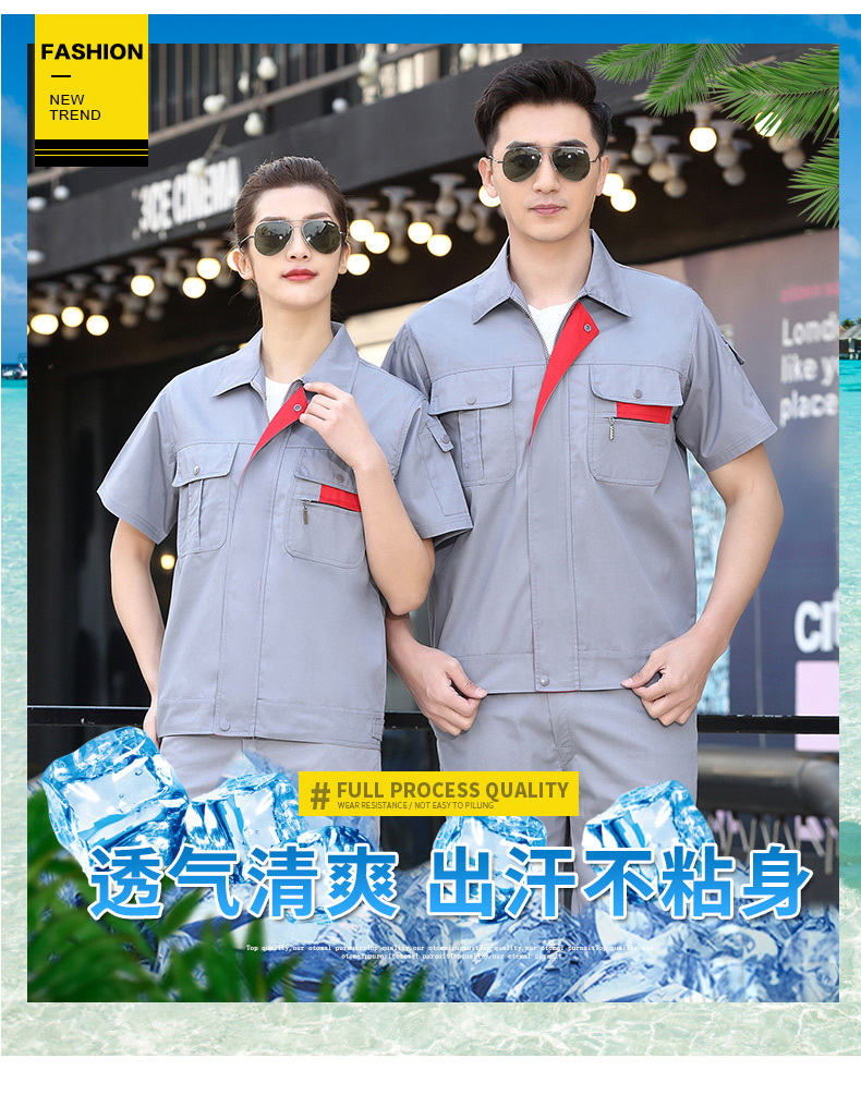 夏季高温炎热,工作服一定要穿着凉爽舒适,夏季工作服通常以短袖为主。
