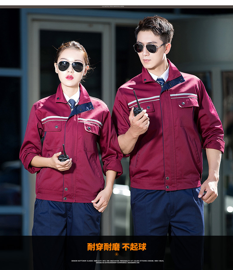 主要用于工厂车间员工作为春季工作服使用,精选面料,拉力强,布纹清晰,健康环保,穿着舒适,是春秋工作服的佳选。