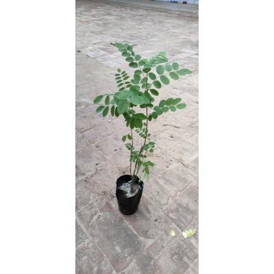 紫穗槐裸根培育好,将裸根装进营养体进行培育,两个月后,成品根细发达,就可进行销售,显著提高经济效益。