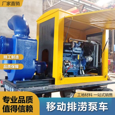 移动排涝泵车 应急泵车排涝 拖车式自吸排污移动泵车 柴油水泵