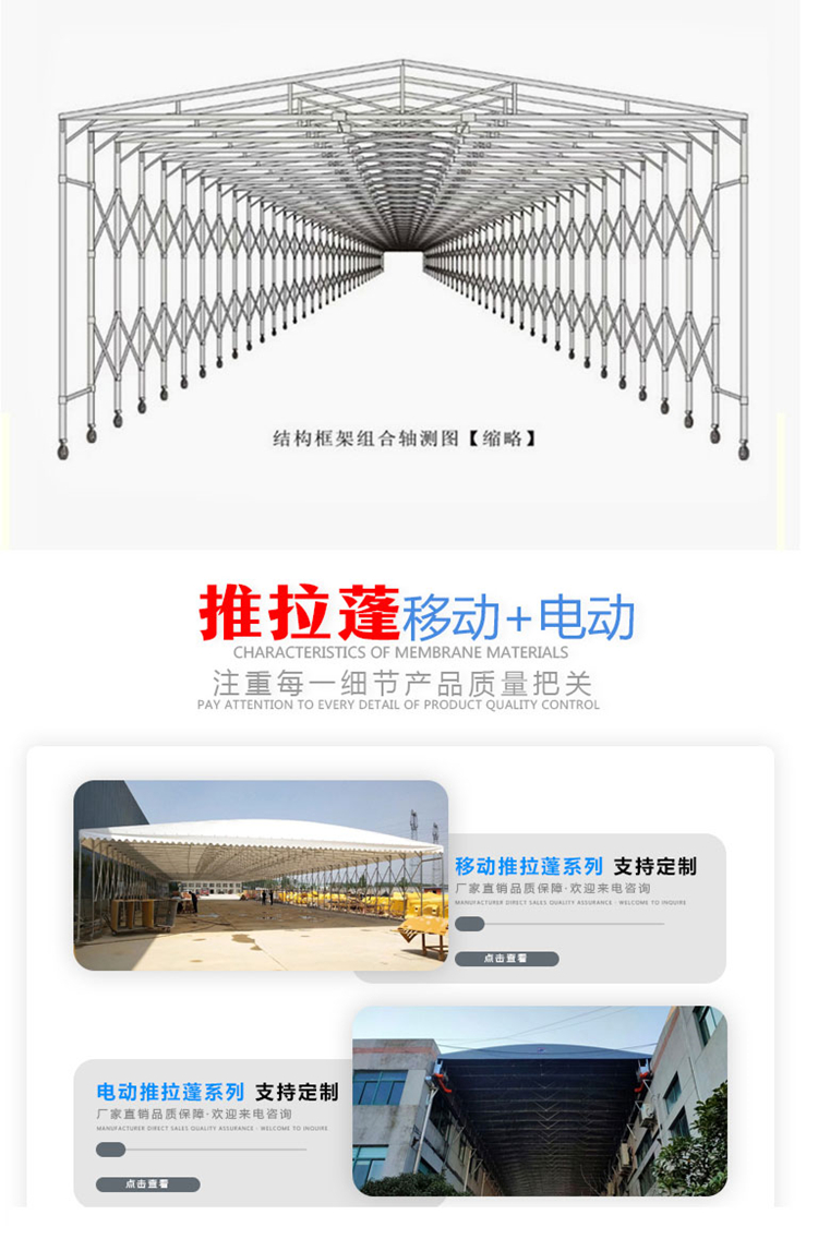 主营产品: 悬空电动雨棚;膜结构停车棚;物流仓库棚