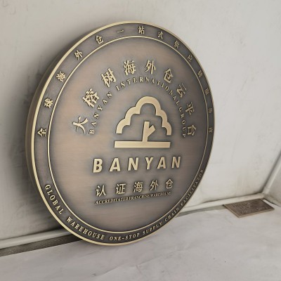 公司黄铜牌匾铝板浮雕标识徽标标志金属复古三维浮雕多少钱