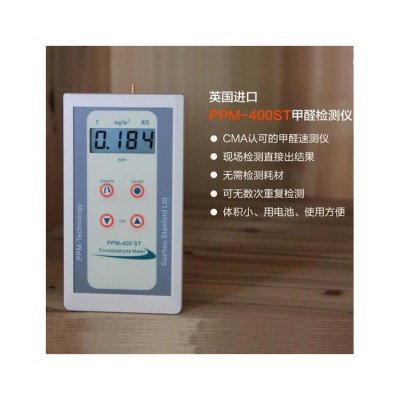 PPM-400ST甲醛检测仪分辨、反应快、抗干扰性能好、操作和携带十分方便。具有湿度自动补偿功能,可有效消除湿度对甲醛检测精度的影响。双单位一键切换显示PPM和mg/m3。以非连续方式采样来测量空气中的甲醛浓度,主要用作职业卫生的检测设备,且功能可扩展。