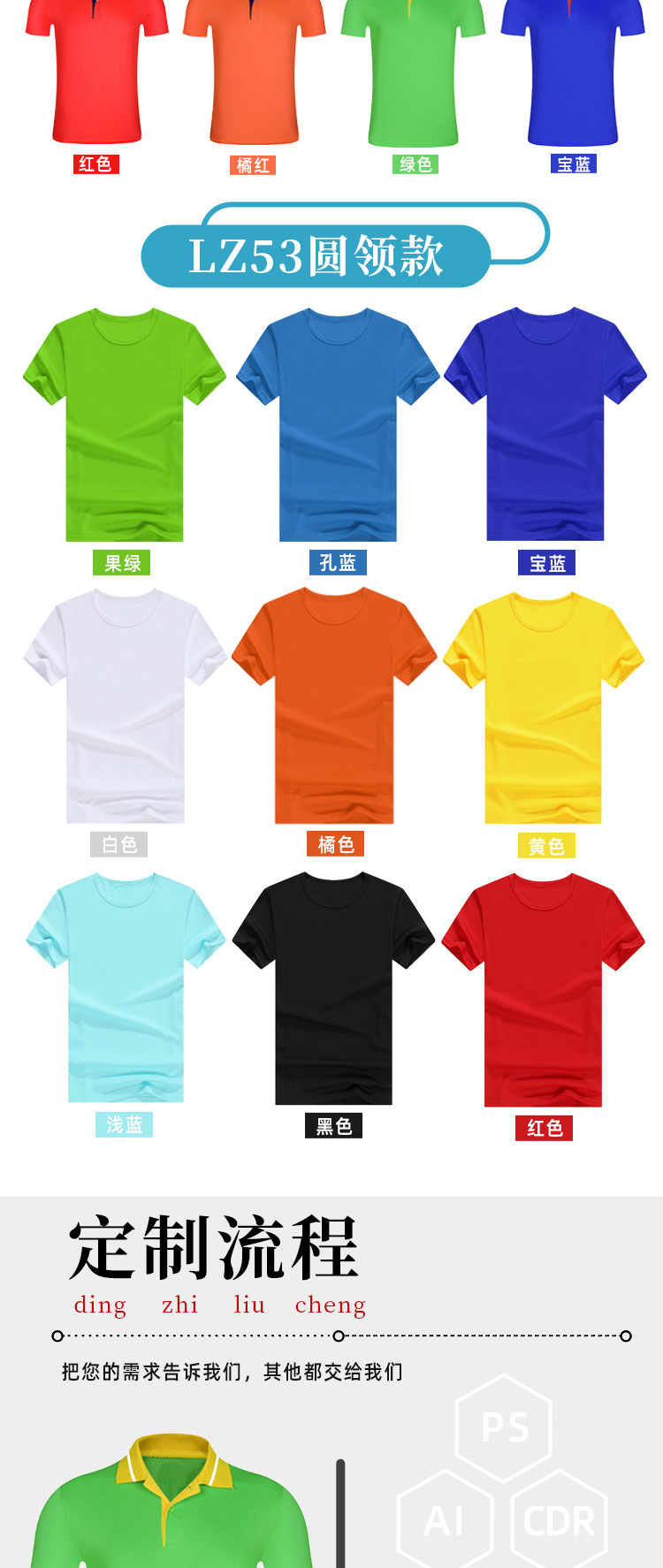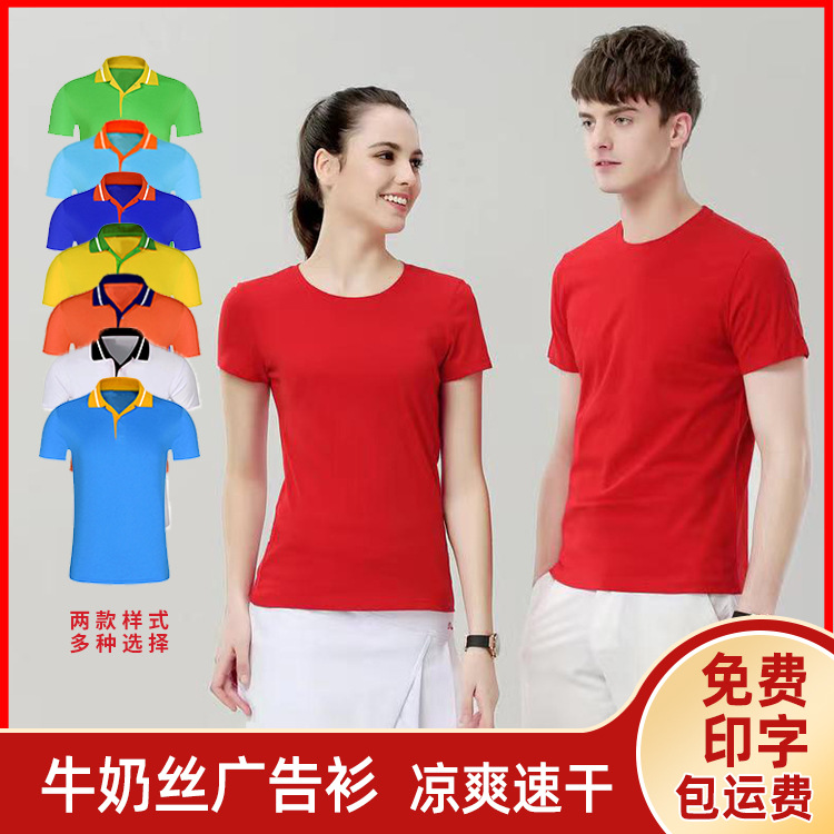 牛奶丝平纹布广告衫厂家批发变色领便宜印字圆领翻领广告衫T恤