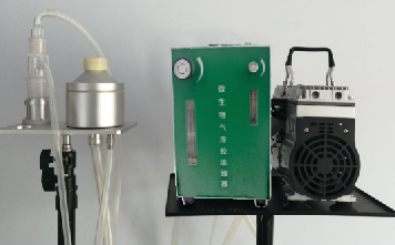 高效率玻璃冲击瓶捕集装置的特殊设计,它需要一台高流量音速的空气采样帮浦,用来捕集空气中微生物(如 花粉、病毒)与其副产物如内毒素、霉菌毒素及其他碎片,以供进一步分析。