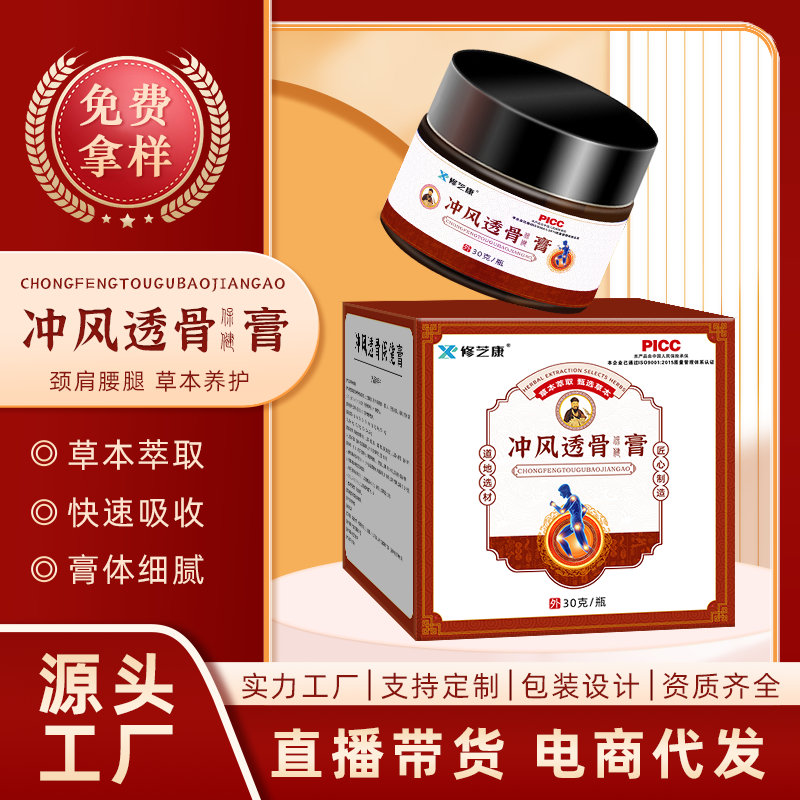 颈肩腰腿疼痛透骨膏 草本萃取舒筋活络膏oem贴牌代加工