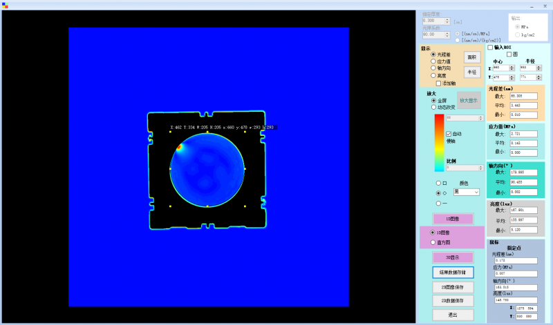 5.随着鼠标移动,样品上各处的应力光程差实时显示;