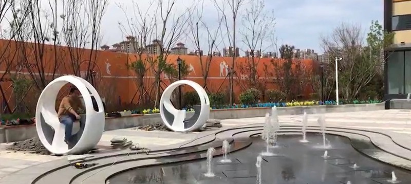 跑泉:是程序控制喷泉的一种精进种类,由电脑和数码控制阀等联动,施工时采用线性喷头施工,用程序控制喷头的开闭和高度,从而在瞬间形成像是奔跑和流动的线条喷泉一样,科技感十足,且能大幅度带动周围游客的心情。