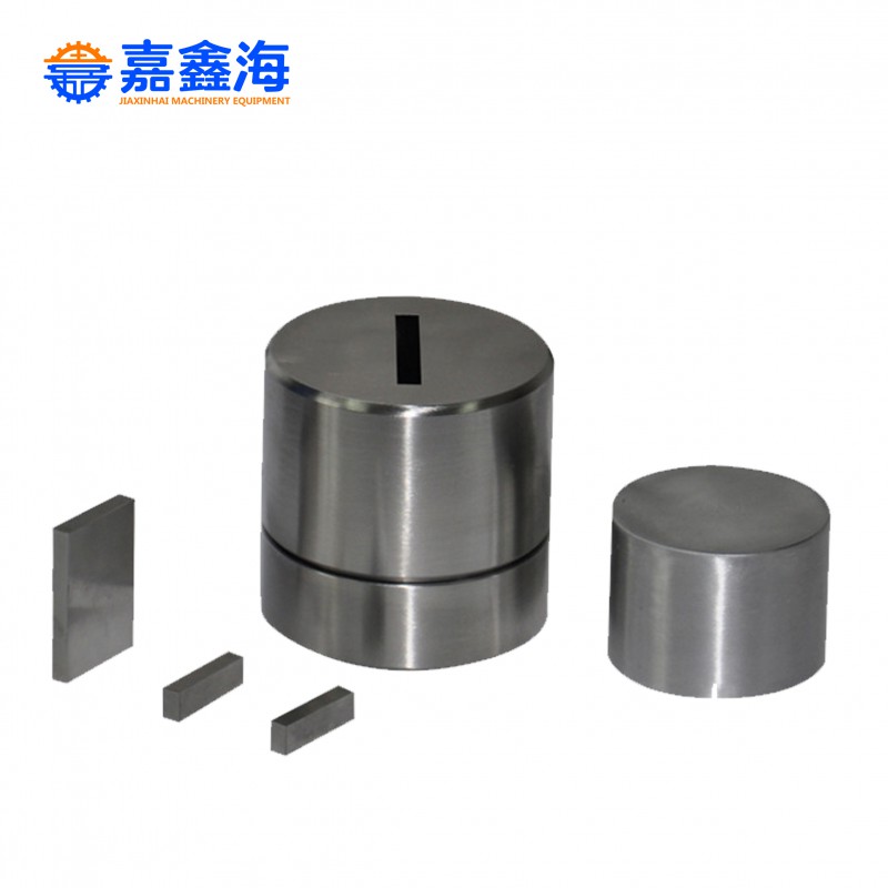 我公司配套压片模具种类规格齐全。包含普通圆柱模具、圆柱形开瓣模具、长方形模具、长方形开瓣模具、红外模具、X荧光硼酸模具、X荧光铁环模具、X荧光钢环模具、硬质合金模具、球形模具、环形模具等压样模具。特殊形状、特殊规格、特殊尺寸的模具可定做。