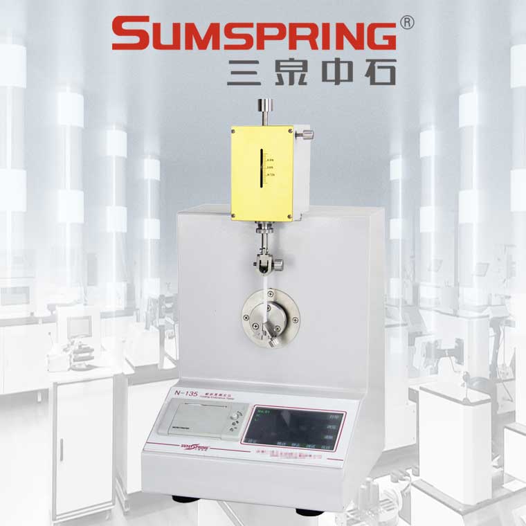 校准仪器水平,调节所需的弹簧张力并固定。常规试验选用9.81 N弹簧张力,根据要求也可采用4.91 N或14.72N弹簧张力。选择试样厚度所需的折叠夹头。将试样垂直地夹紧于折叠头两夹具间,松开弹簧固定螺丝,观察弹簧张力指针是否在所需的位置上,如有位差再重新调整。