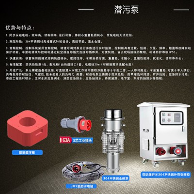 3、采用变频控制系统,转速可调节,对水泵运行参数进行实时的监测,水泵电缆线与变频柜通过航空插座(既插式连接),方便快捷。
